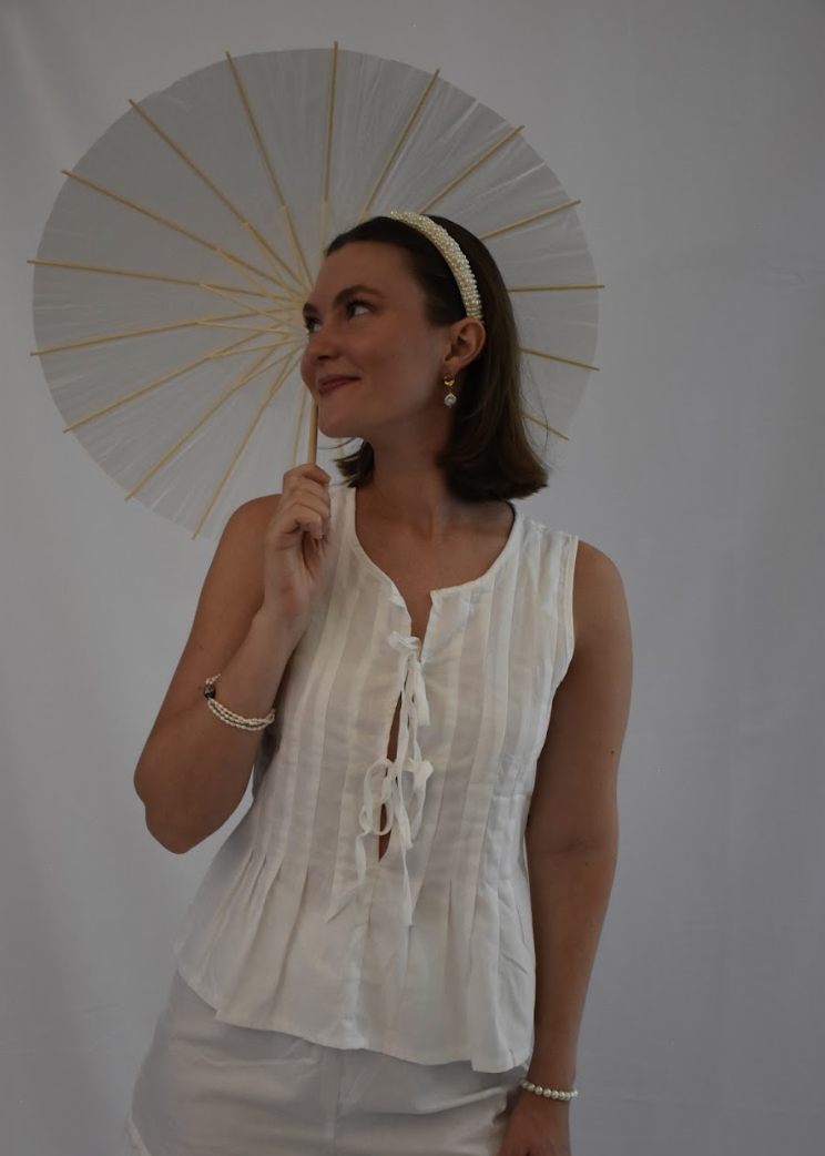 Chic, playful, and totally Instagram-ready. This headband is dotted with lustrous pearls that add just the right amount of sparkle without trying too hard. Slip it on and instantly elevate any updo, loose waves, or “I woke up like this” bridal vibe ~ effortless, flirty, and cool-girl approved.