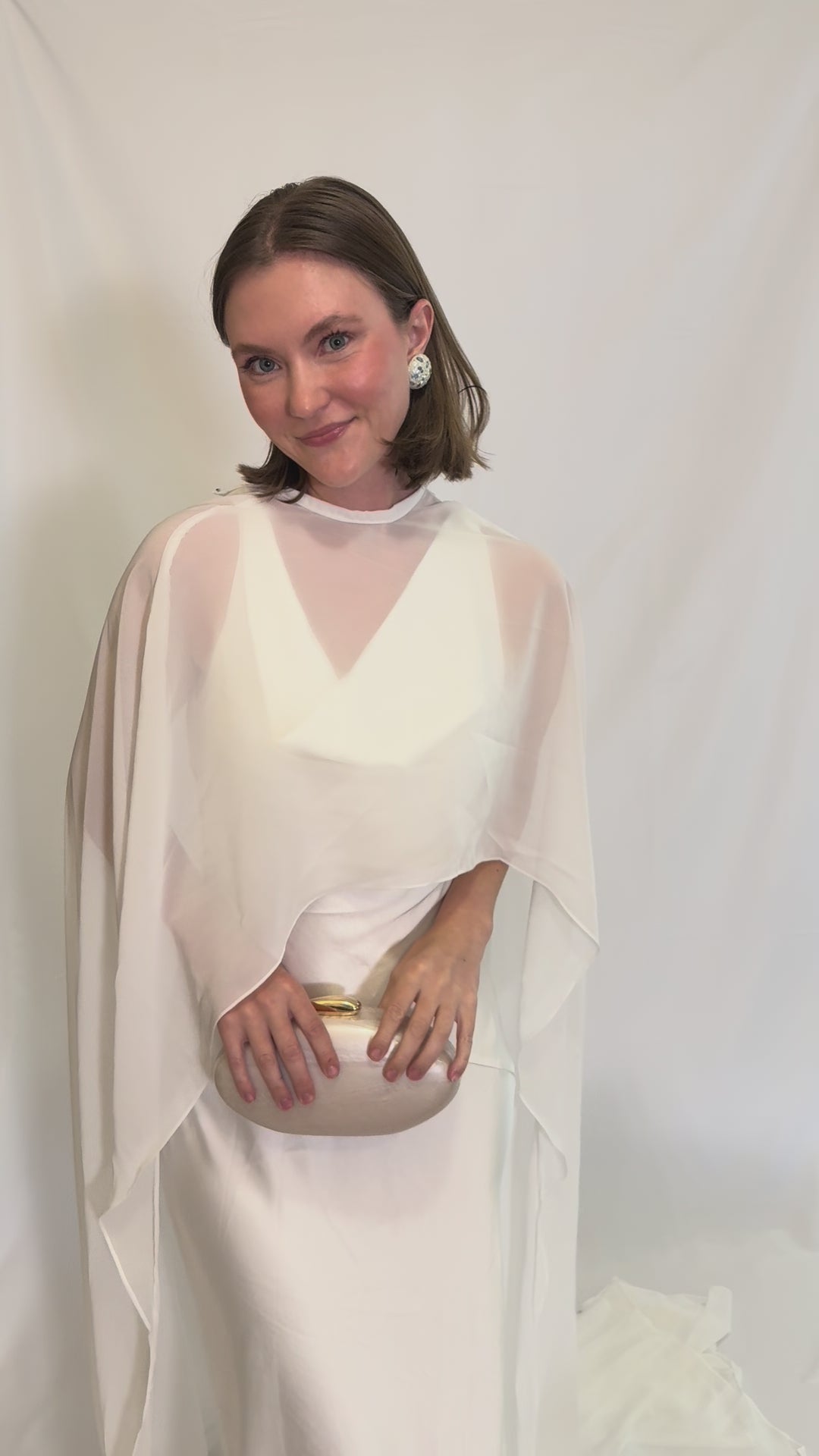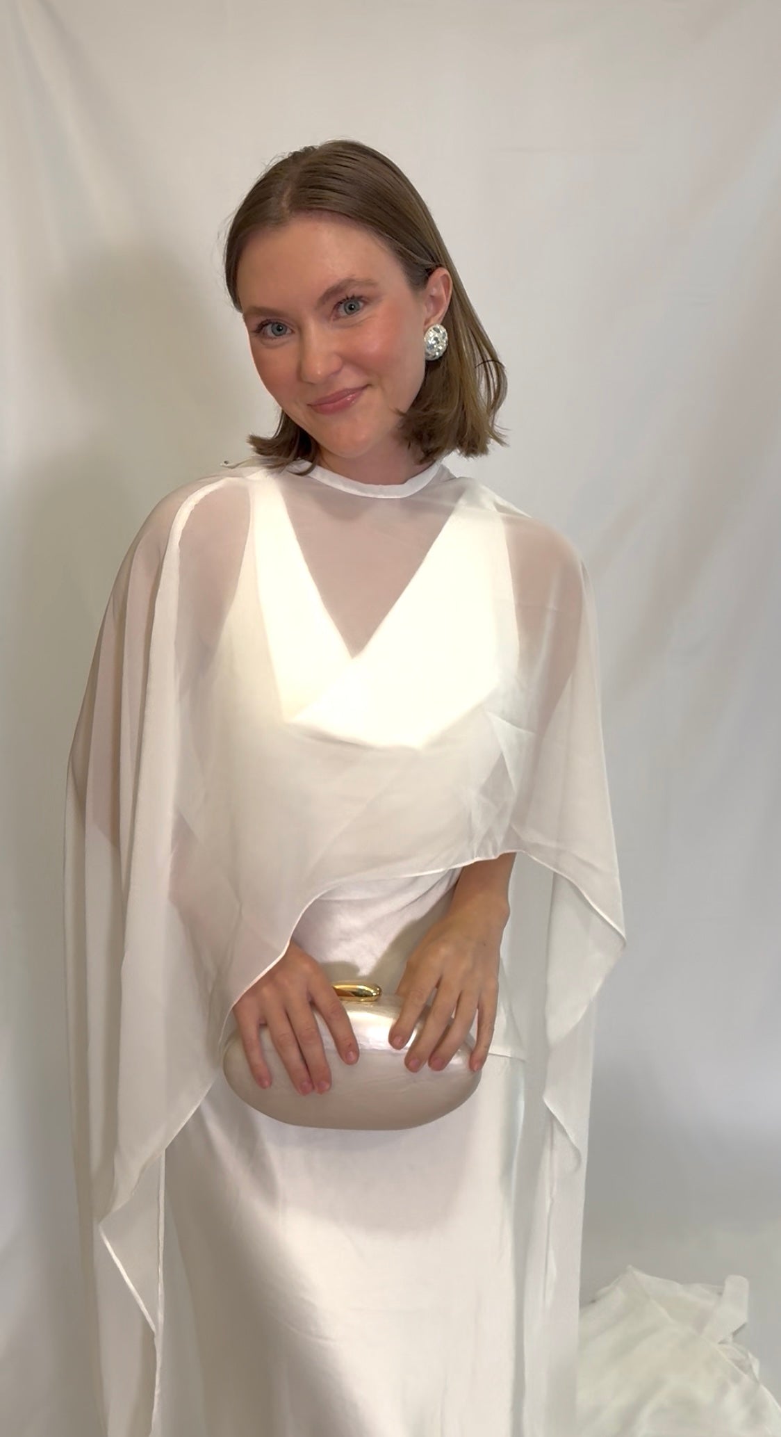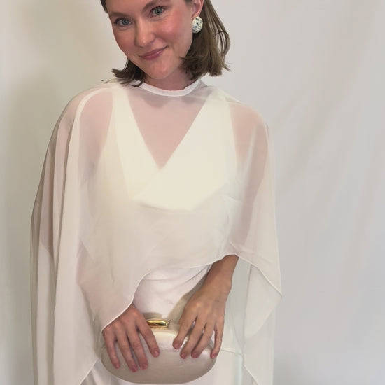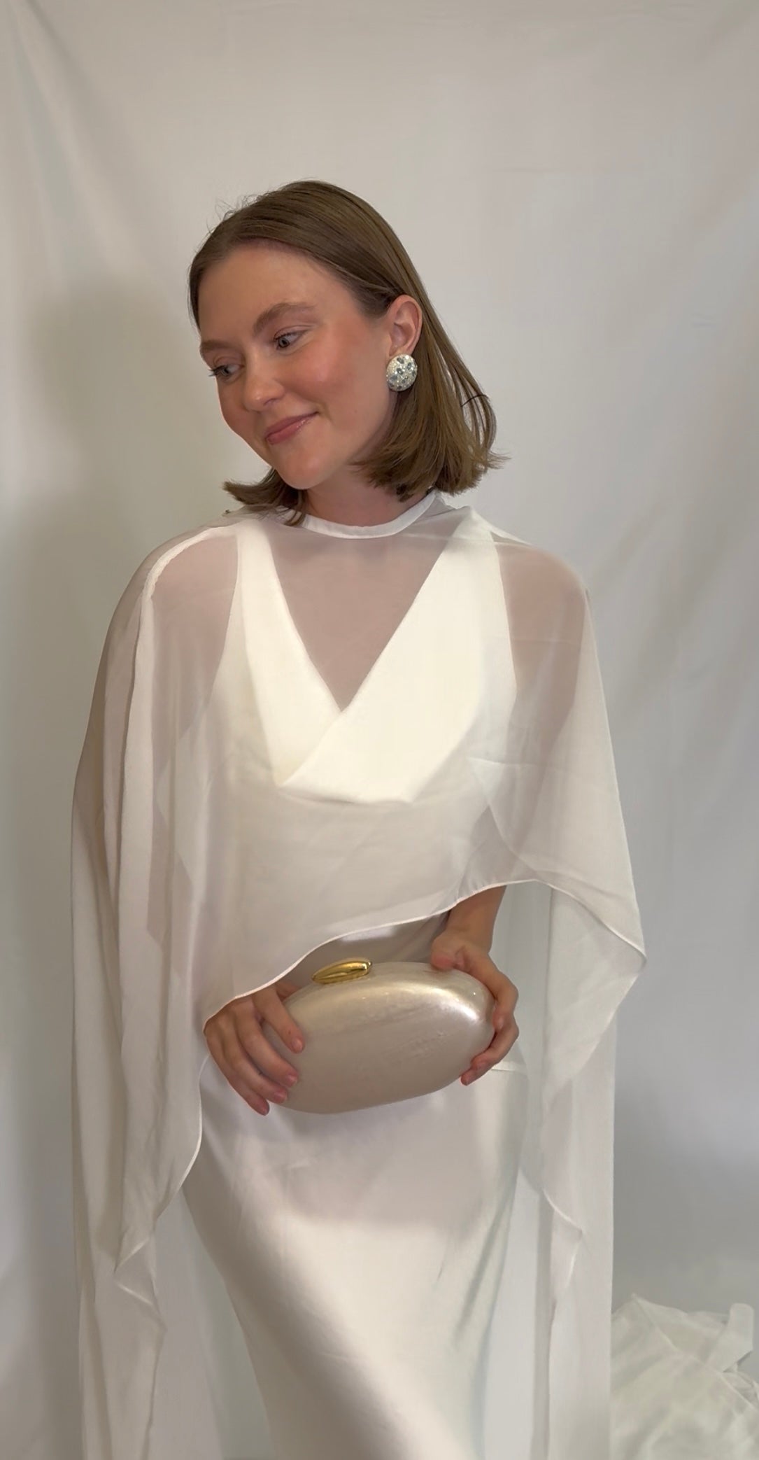 Minimalist chic meets bridal glam. This structured pearl-toned hard case with a sleek gold clasp is the definition of modern elegance. Clean lines, luminous shine, and just the right amount of luxe ~ the finishing touch for the bride who loves her accessories sharp and sophisticated.