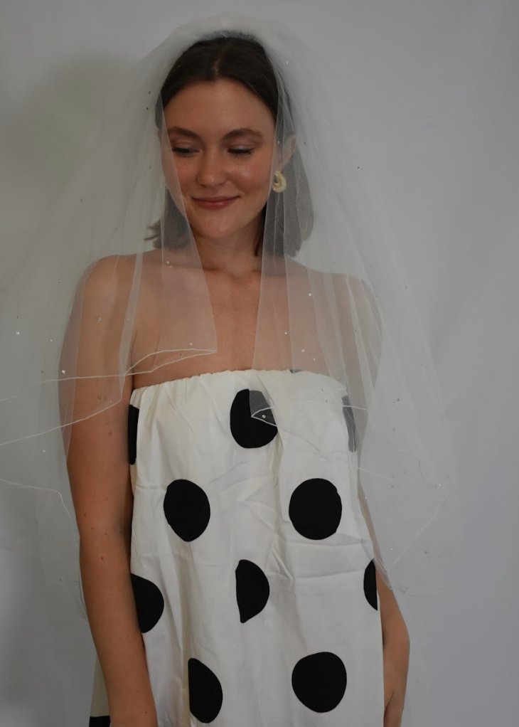 Drama, elegance, and just a hint of magic. This multitiered cathedral-length veil flows like a dream, dotted with delicate sparkles that catch every twirl and step down the aisle. Perfect for brides who want to feel ethereal and unforgettable, it’s the ultimate statement piece that pairs timeless romance with a touch of sparkle.