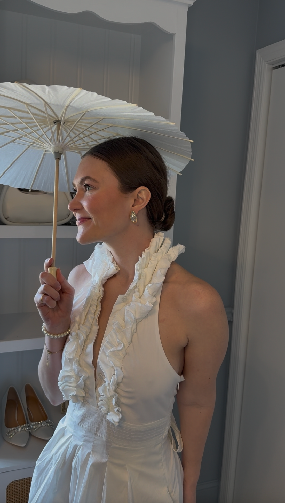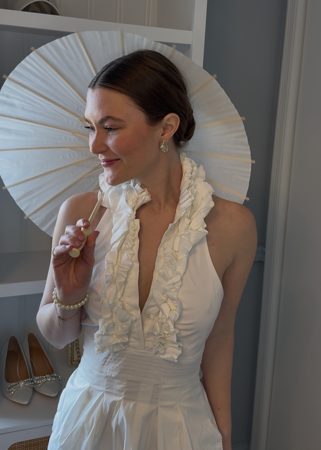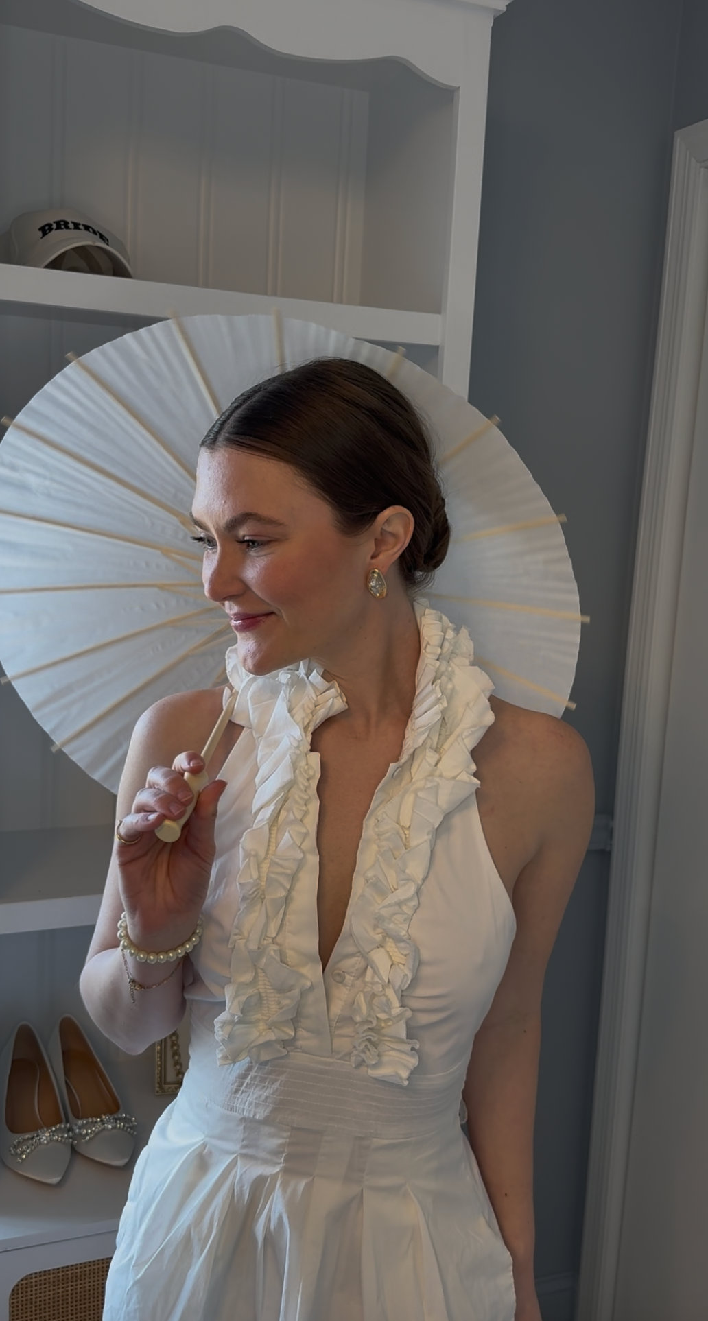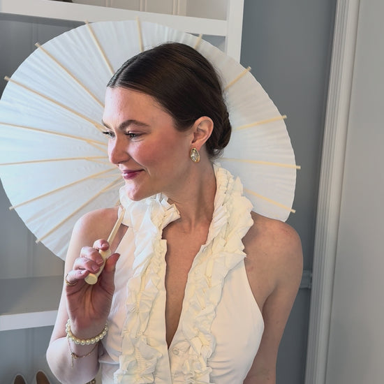 Chic, whimsical, and totally photo-ready. This lightweight paper umbrella adds a playful, vintage touch to your bridal look — perfect for sunny days, garden weddings, or a little extra flair on your stroll down the aisle. Elegant enough to complement your gown, but fun enough to steal a few Instagram moments.